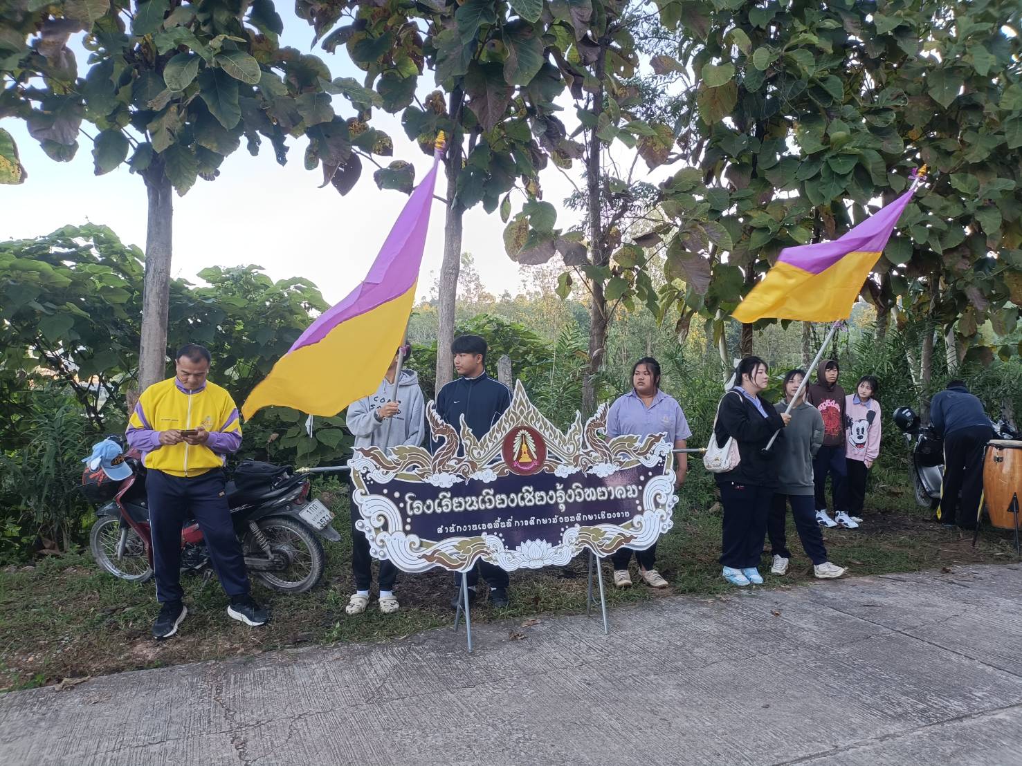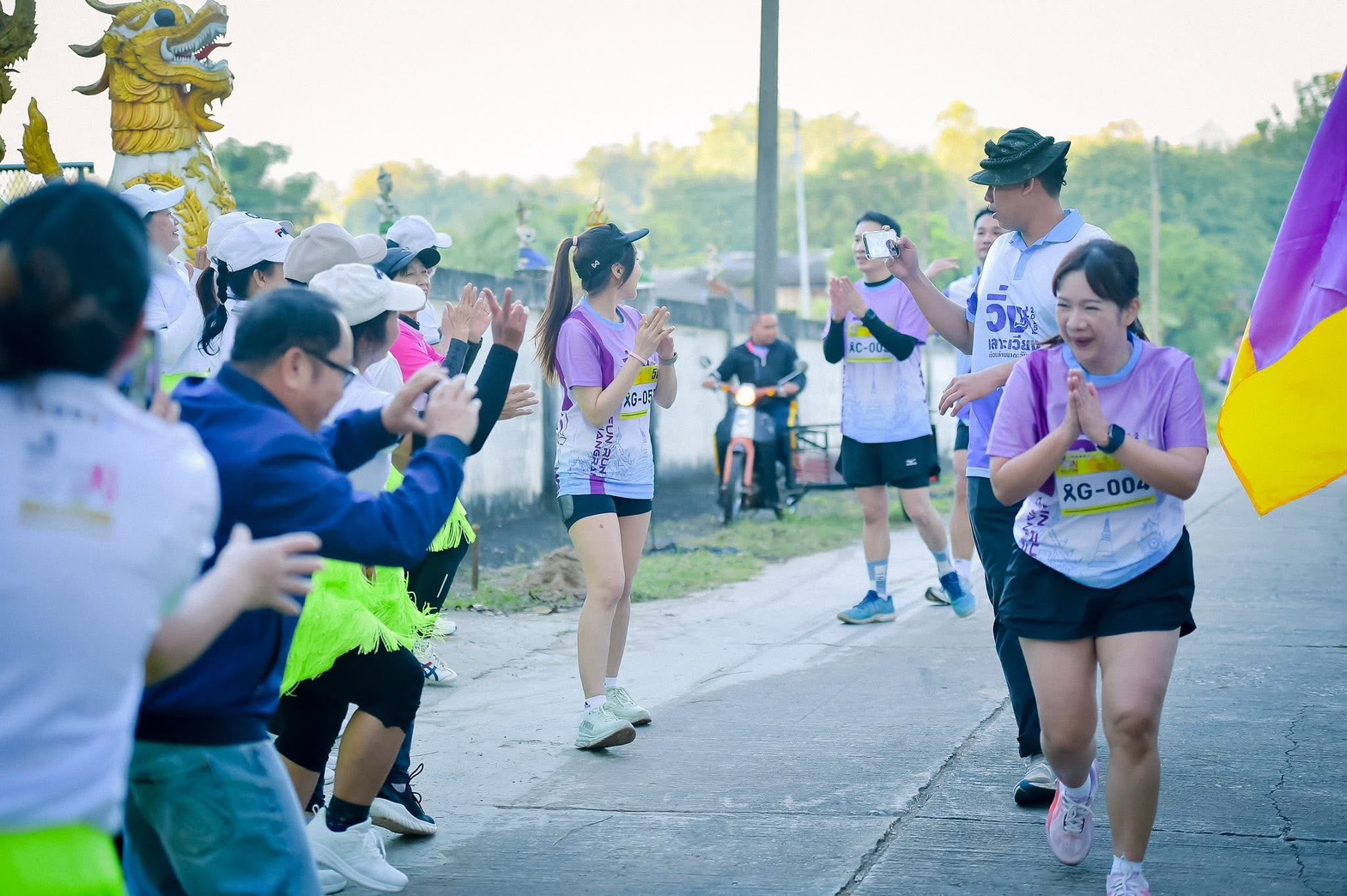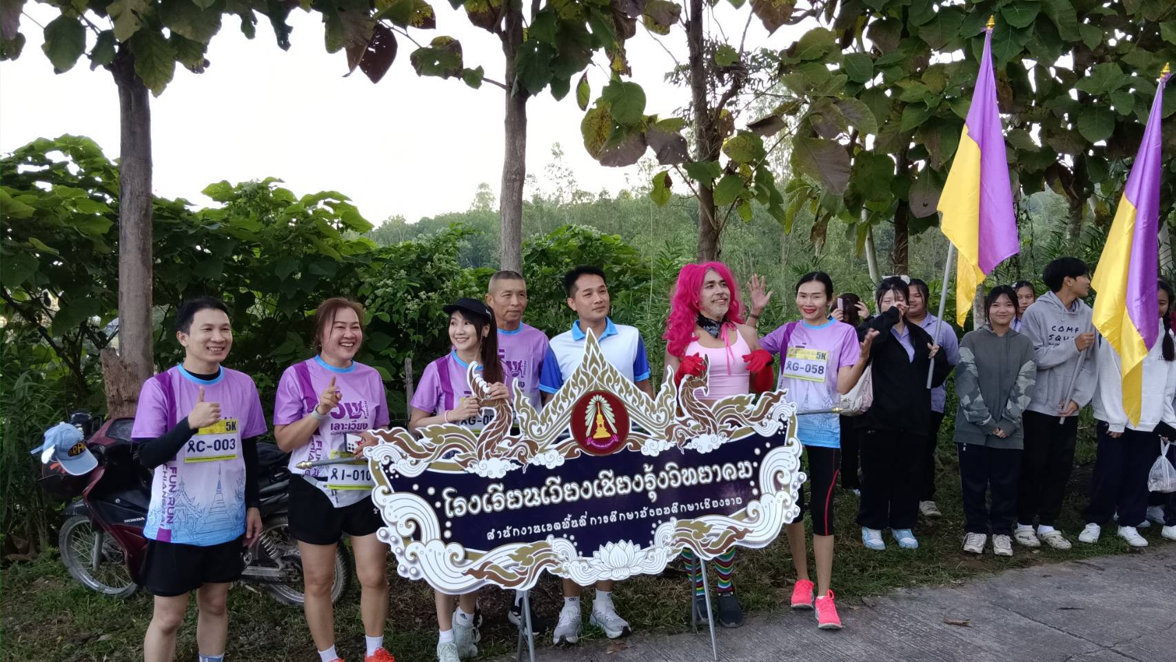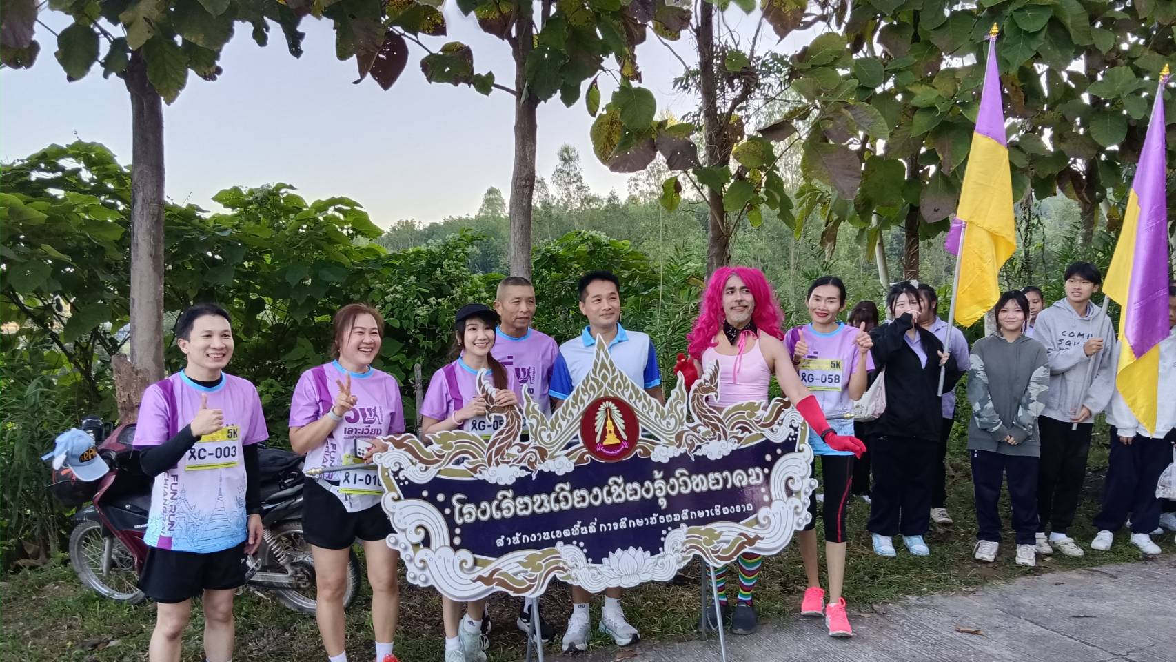นักเรียนโรงเรียนเวียงเชียงรุ้งวิทยาคม ทำหน้าที่สร้างสีสัน ความสนุกสนานให้กับนักวิ่ง ที่เข้าร่วมวิ่งเลาะเวียงล้านนาตะวันออกสนามเวียงเชียงรุ้ง ระหว่างวันที่ 22-23 พฤศจิกายน 2568